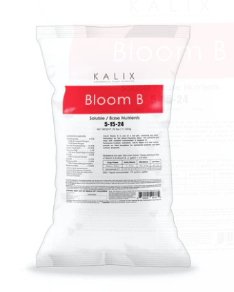 KALIX Bloom B is one of a two-part, commercial base nutrient formulated for the bloom/flowering phase. This professional grade base with chelated micronutrient is designed for hydroponic/soilless cultivation. KALIX Bloom A/B base nutrients provide an ideal foundation for commercial production and custom nutrient programs.