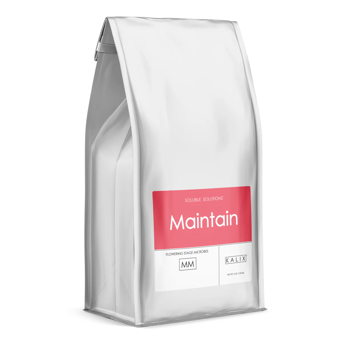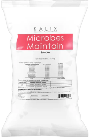 KALIX Microbes Maintain is a specialized blend of beneficial bacteria and fungi, formulated for use during the fruiting/flowering phase. Designed for commercial production, KALIX stage-specific microbe blends boast extremely high spore counts and can be used to inoculate at any time during the plant's life cycle.