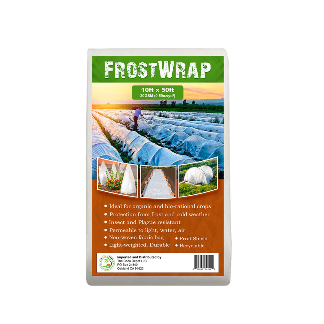 FrostWrap, Freeze and Crop Protection Plant Cover - 0.59 oz/yd2 (20 GSM) of Fabric Non-woven 10ft x 50ft Reusable Garden Floating Row Cover for vegetables, fruit, tree, plants Sun-Pest protection.