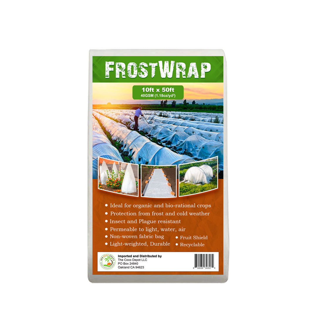 FrostWrap, Freeze and Crop Protection Plant Cover - 1.18oz/yd2(40 GSM) of Fabric Non-woven 10ft x 50ft Reusable Garden Floating Row Cover for vegetables, fruit, tree, plants Sun-Pest protection.