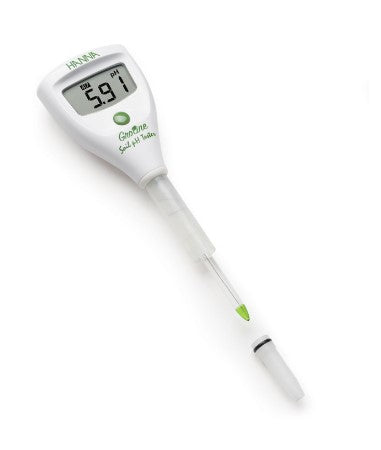 Designed to bring simplicity to pH testing of soil, the HI981030 GroLine Soil pH Tester is designed for taking direct pH measurements in soil for environmental and agricultural testing. The built-in probe features an open reference junction, conical glass tip, and a removable sleeve design making it ideal for measuring the pH of soil.