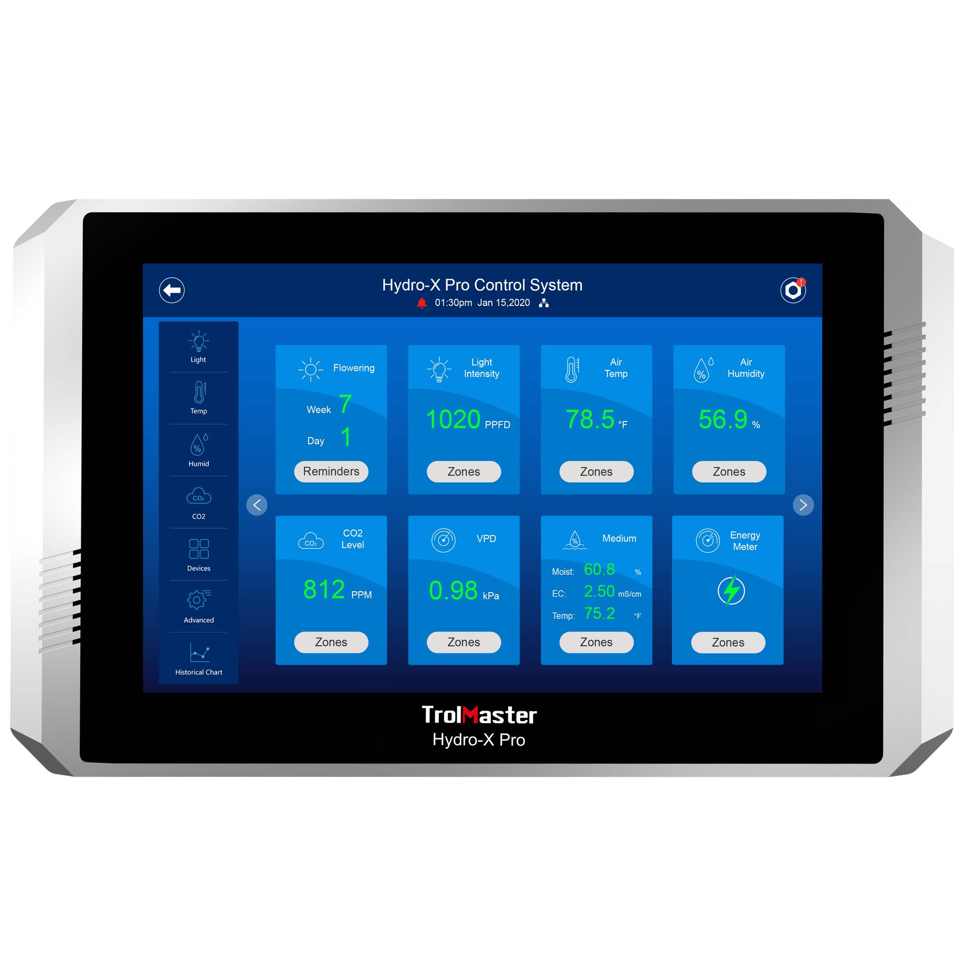 TrolMaster revolutionized environmental controller technology when it introduced the Hydro-X. The Hydro-X Pro continues the revolution with a 10’ touch-screen and a web-based software.