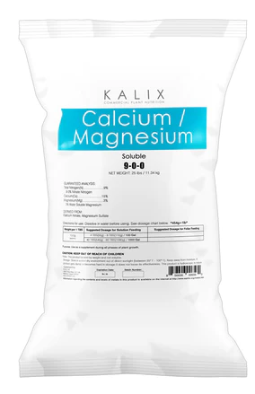 KALIX Calcium/Magnesium is a fully soluble calcium (15%) and magnesium (3%) supplement derived from optimized ratios of calcium nitrate and magnesium sulfate. Use this formulation to boost calcium and magnesium levels during all phases of plant growth. KALIX Calcium/Magnesium can help with treating deficiencies and creating custom tailored recipe solutions. Works in conjunction with all nutrient and feeding programs.